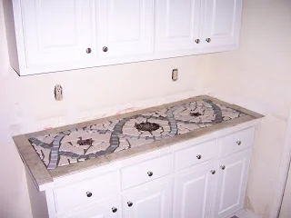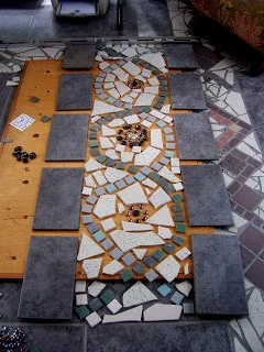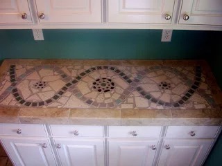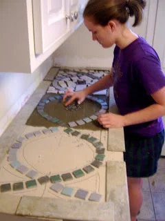 Truly, I am thankful to have survived. And despite the fact that there were too few hours in the day for the amount of work I was supposed to do, I am convinced that the non-school things I did this summer are what got me through it (mostly) unscathed. Surprisingly enough, helping Alexander with his remodeling efforts is at the top of the list. Since most of my time is spent reading and writing about abstractions all just to get some theoretical and largely meaningless "grade," there's something incredibly satisfying about using my hands to do something concrete, that I can see and touch when it's finished. My favorite is the mosaic we made for the laundry room counter a couple of weekends ago, so I thought I'd share.