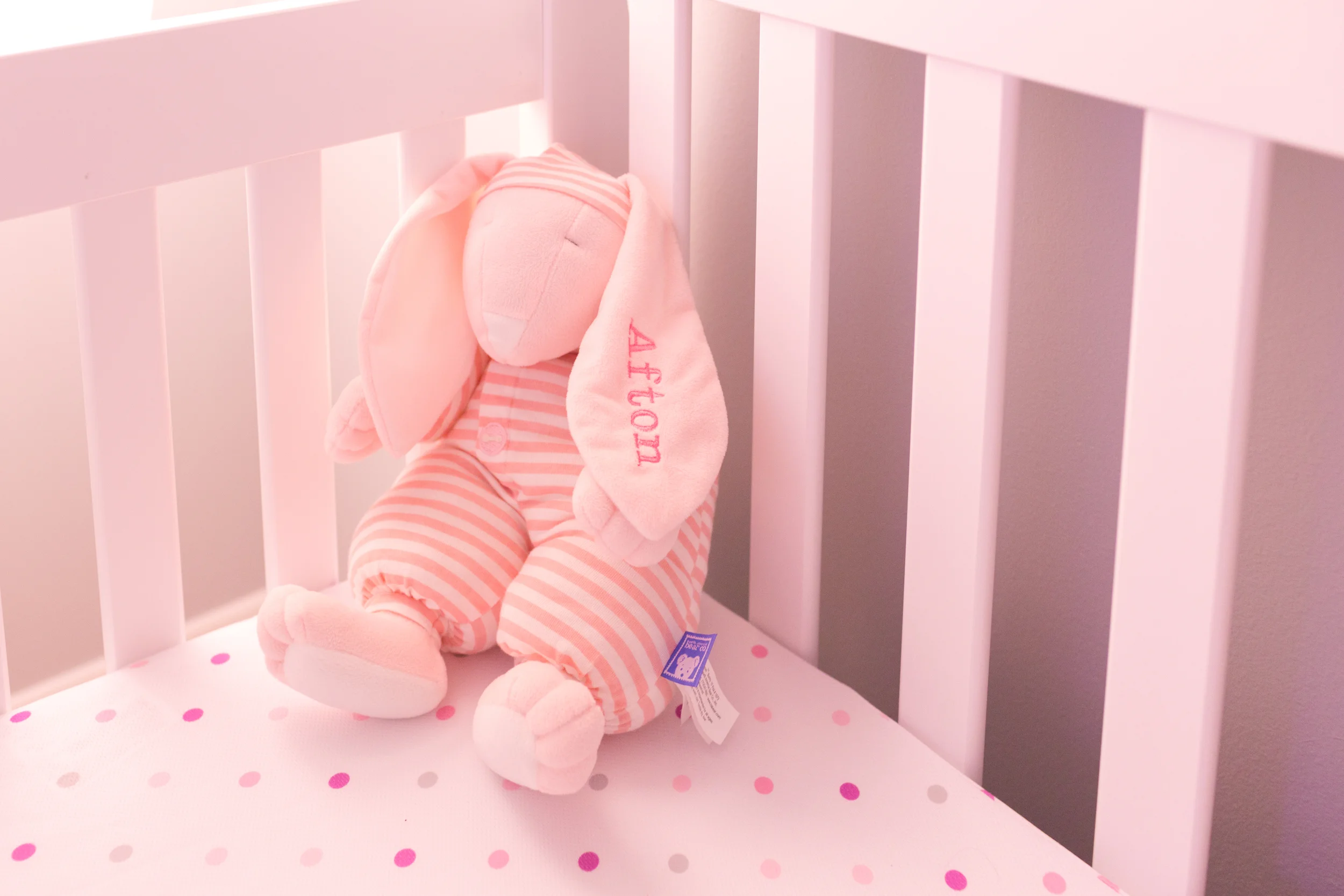 September 26, 2015: Pink. Another of Afton's many gifts, this cute bunny is hanging out in her crib until she's ready to start sleeping in it.